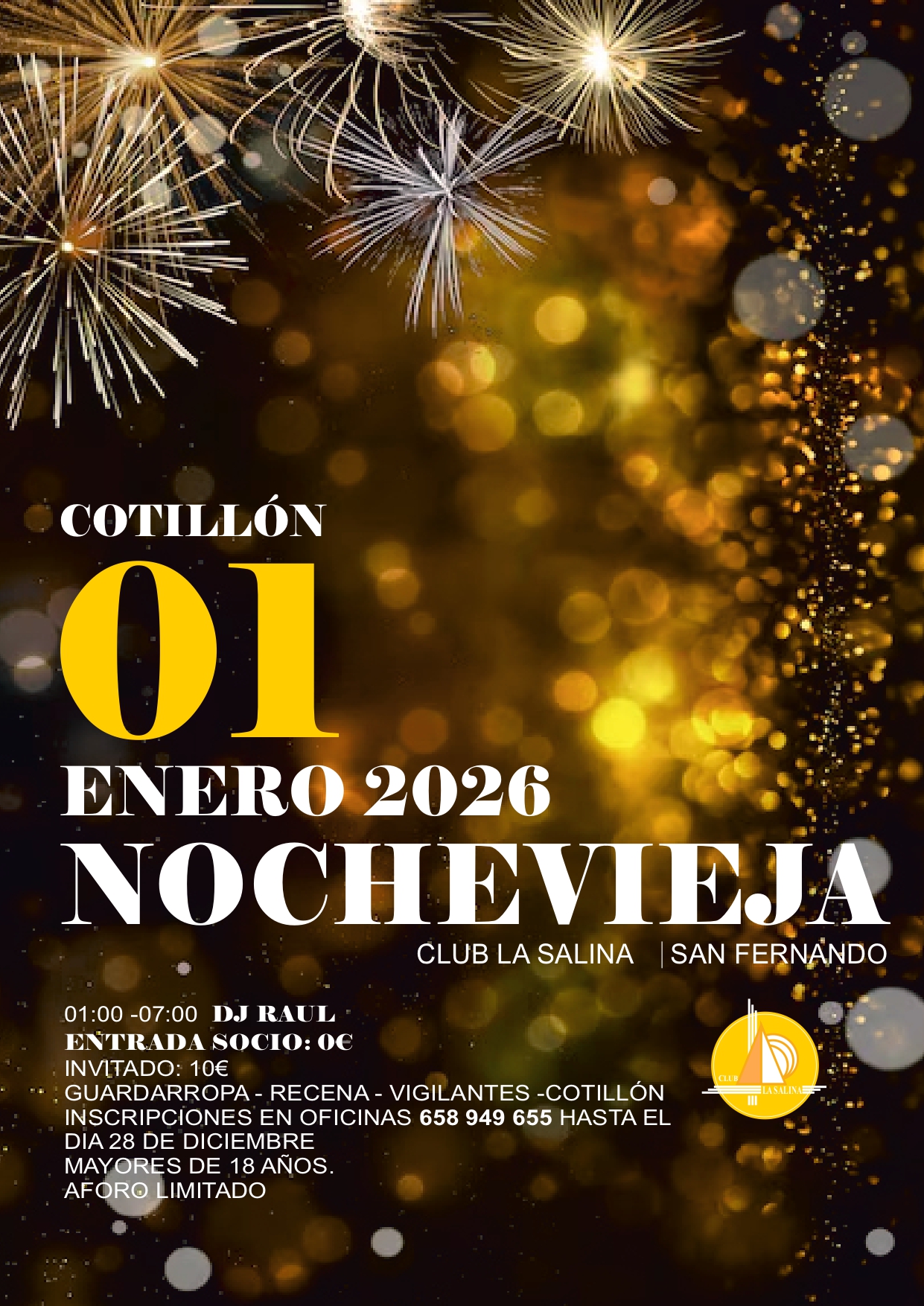 NOVEDADES eVENTOS del club la salina aCTIVIDADES DEPORTIVAS CABALGATA SS.MM. REYES MAGOS. SOLO SOCIOS Leer más PREUVA 2025 Leer más CONCIERTO NAVIDEÑO 2025 Leer más COTILLÓN FIN DE AÑO Leer más LOTERÍA INFANTIL Y PAPA NOEL Leer más ZAMBOMBA NAVIDAD 2025 Leer más FIESTAS NAVIDEÑAS Leer más TORNEO BENÉFICO PADEL NAVIDAD Leer más CASTAÑAS Y BONIATOS Leer más LOTERÍA DE NAVIDAD Leer más PREUVA 2025 por Club La Salina | Dic 26, 2025 | Evento CONCIERTO NAVIDEÑO 2025 por Club La Salina | Dic 18, 2025 | Evento COTILLÓN FIN DE AÑO por Club La Salina | Dic 18, 2025 | Evento « Entradas más antiguas